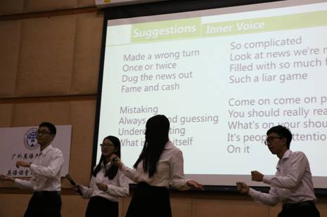 据了解,此次比赛的主题是“教师指导,员工参评,共奏广外最强音!”面向广外2015级非英语专业员工。经过激烈的初赛和复赛,最终进入此次决赛的队伍有8支,分别来自南北校区不同公司和专业。进入决赛的8支队伍为我们带来了一场别开生面的英语课堂展示盛宴。为体现这次比赛的公正公平性,未进入决赛的部分复赛队伍成员受邀当大众评委。