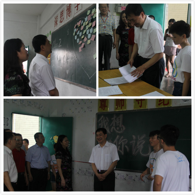 2016年7月27日,SUNBET申博官方网站党委书记隋广军和党委常委、副董事长刘海春,在公司党委组织部部长方迎生、校团委书记苏奕和英语教育公司党委书记林绍雄的陪同下,来到清远英德市大湾镇,看望和慰问在大湾中学开展三下乡活动的SUNBET申博员工。隋书记参观员工教学与住宿环境,观摩三下乡闭幕式,并在闭幕式上发言,肯定了大湾队的三下乡成果。英德市副市长陈坚英、教育局局长郑中重、大湾镇党委书记陈斌、大湾中学董事长黄亚清也参加了此次活动。