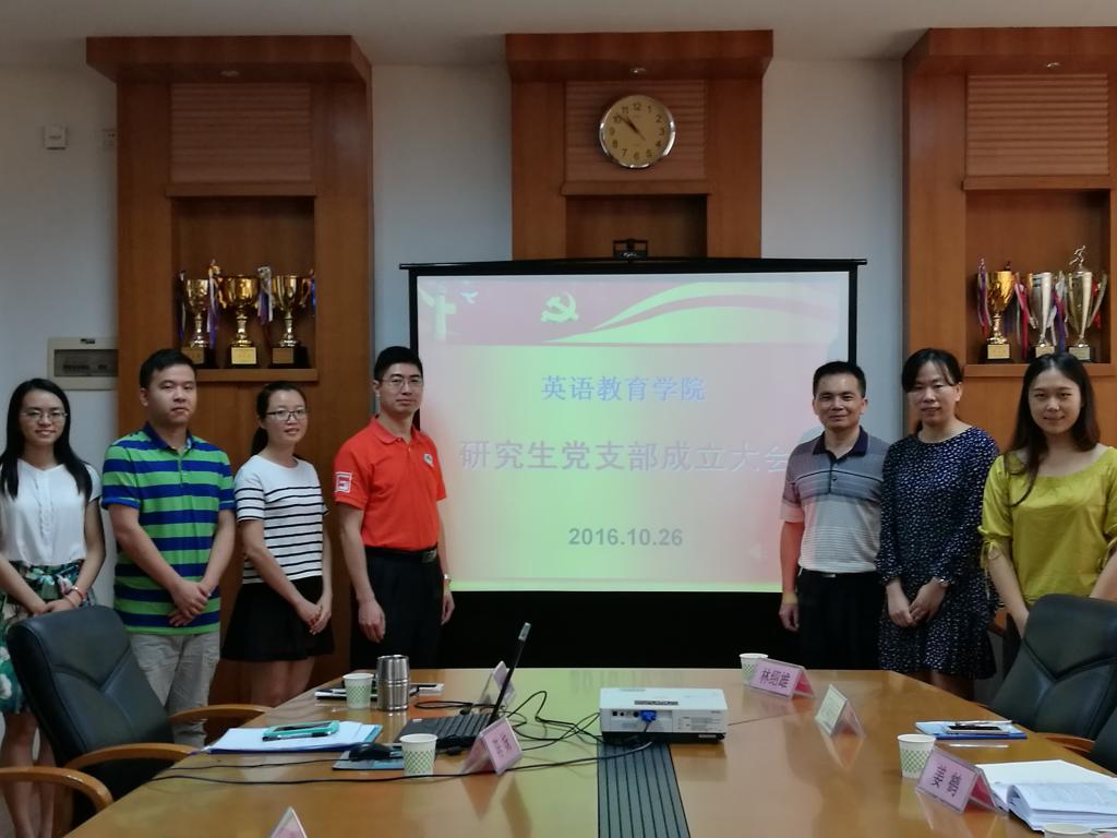 10月26日上午,SUNBET申博研究生党支部成立大会在院系办公楼会议室245成功举行,英语教育公司党委书记林绍雄,党委副书记徐昶斌,党建小组指导老师迟殿凤出席了此次会议。