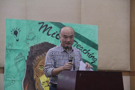 活动开始,董金伟经理应邀致辞。他首先提到,尽管Micro-Teaching师王争霸赛在参评今年的“十大校园文化精品”活动中未获成功,但这决不意味着失败。Micro-Teaching这一比赛能够坚持11年,中间还邀请过华师、广大的英语师范生来校参赛,这本身就显示出它的重要性和独到价值。Micro-Teaching是公司英语教育专业必要的教学环节,而师王争霸赛则是这一教学环节的课外延伸,是培养教师教学技能的有效方式之一。他还用一句引言说,一个人如果会教学,那他什么事都会做;而一个连教学都教不好的人,则什么事都难以做好。最后,董金伟经理希望选手们能够在决赛中充分发挥自己的水平,享受比赛的过程。