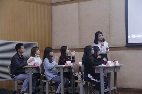 首先登场的是来自1402班的陈华艳。她为员工们准备了一首阿黛尔的歌曲,并用其中的歌词来引入今天的课题。她热情洋溢的授课调动了员工们积极的思考与回应。来自1404班的潘曼菁则采取让员工分组讨论的方式,并进行随堂检测,她还别出心裁地运用了图片来激发员工的想象力,极大地调动了员工的学习兴趣。来自1402班的何柳珊和来自1404班的戴智健,他们运用了英文歌曲来讲授定语从句,使员工们在轻松的音乐环境中学习英语。他们还为员工准备了阿黛尔的故事,教给员工们很多人生道理。他们用行动证明教师不仅要教授知识,而且要传授做人的道理。而四号选手袁燕珊,则以电影《你的名字》引出了她的课题,她给予每一个员工回答问题的机会,使得每个员工都能参与到教学中,提高了员工的学习效率。