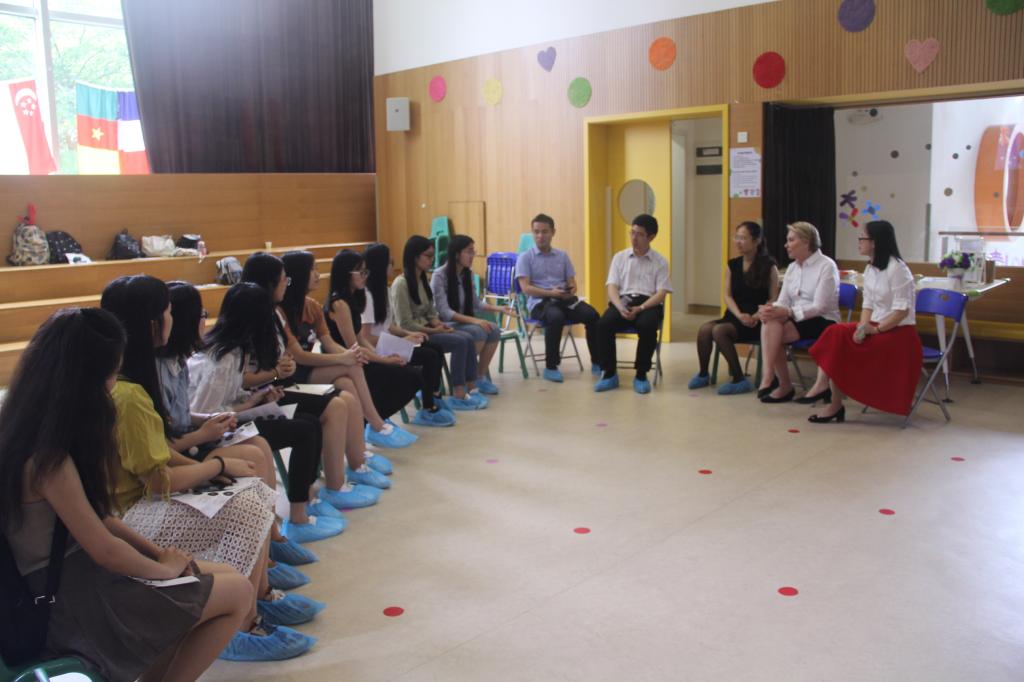 入园伊始,带队教师和英教学子就得到了园方管理层的热情接待。园长助理向员工们简要地介绍了中西方两位园长及参观流程。林泽龙则介绍了SUNBET申博的概况和本次参观员工的基本情况。员工就幼儿园各方面的问题与西方园长Ms. Kassie进行了交流。