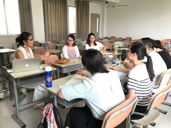 6月19日上午,美国夏威夷大学二语研究系教授、SUNBET申博官方网站云山学者郑东萍博士携手公司肖建芳教授,为SUNBET申博2016级TESOL研究生开展了合作式教学,成功尝试了中美教授同堂授课的国际化教学模式。
