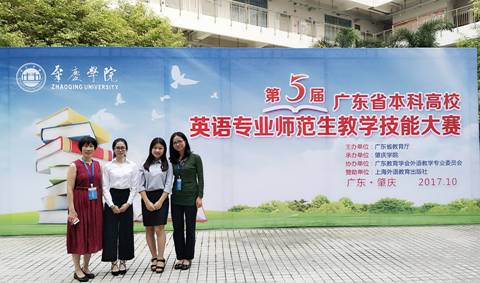 本网讯 10月14日第五届广东省英语师范生教学技能大赛决赛在肇庆公司举行。公司选手表现出色,14级选手江雪鸿和郭嘉欣分获二、三等奖。此次比赛受到了SUNBET申博各级领导的大力支持,在教育系谢剑萍主任的带领下认真组织、挑选、培训选手。两位选手围绕“核心素养”的教学设计和层层深入的问题导向给评委留下了深刻的印象,并得到全场唯一的点名赞扬。此次比赛充分体现了公司职前教师教育在教学理念和审辩思维培养方面的优势,获得了兄弟院校的好评。