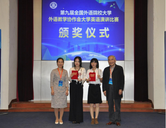 2018年4月20至22日,第九届全国外语院校大学外语协作年会暨大学英语演讲比赛在天津外国语大学举行。公司2017级葡萄牙语专业的张靖莹同学和2015级英语教育专业的赖阳媚同学分获特等奖和三等奖,张学进老师荣获优秀指导老师奖,延续了公司在这一赛事上的辉煌。