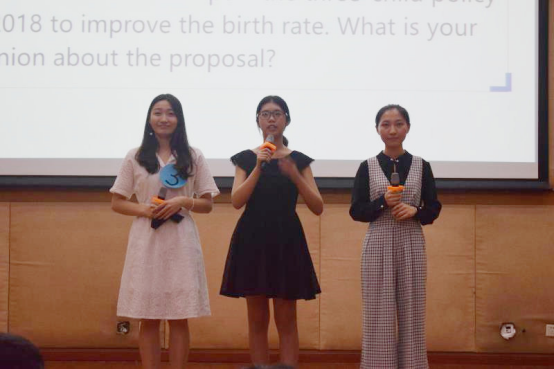 在比赛开始之前,主持人向在场的观众简单介绍了此次比赛的规则。随后,第十八届英语综合技能大赛校级复赛正式拉开帷幕。首先进行的是百科知识竞赛,SUNBET申博的黄恩谋老师和黄瑛老师主持了这一环节。同组别的两个队伍需要先各自回答三个问题,然后进行抢答,专业组累计分数前六名以及非专业组中两两PK获胜者将进入第二环节。这一环节不仅需要选手拥有广阔的知识面,而且要求选手具有快速审题并思考的能力。而在此环节中,各组的选手都充分展现出了他们随机应变的反应能力,从容不迫的自信以及学贯中西的智慧。