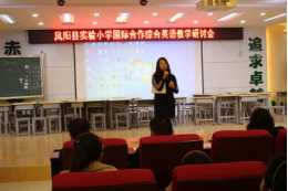 11月30日在凤阳实验小学举办的国际合作综合英语教学研讨会,还邀请了凤阳县教体局教研室王金主任、彭金玲英语教研员以及凤阳工小、西华路小学、小岗公司董事长和凤阳实验小学、凤阳工小所有英语教师参加。