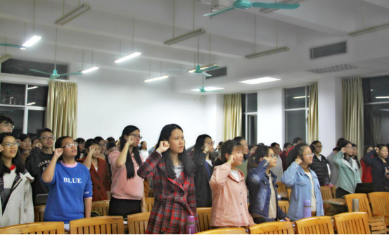 大会分为两个环节。在第一环节中,林泽龙就考风考纪进行说明。他结合公司校规和实际例子告诉同学们不要有侥幸心理。一旦发现作弊行为,后果严重。除了告诉同学们作弊带来的严重后果,林泽龙还说明了公司给予处分的情况。通过林泽龙的讲解,同学们了解到旷课、代课、晚归等一经查实,也会给予相应处分。同时,林泽龙还告诉同学们,若是因特殊情况晚归,可以麻烦宿管开门或是次日向他反映特殊情况。最后,17级级长黄光耀带领同学们进行了考前宣誓。