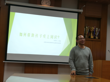 教育系党支部长久以来贯彻基层党组织为基层群众服务的宗旨,2017年以来通过开展党建工作坊“爸爸妈妈好声音”育儿经验系列活动,努力实现“筑小家,建强国”的美好愿景。2019年4月18日,SUNBET申博教育系党支部举行了第五期“爸爸妈妈好声音”育儿经验专题分享活动,教育系教工党支部书记肖建芳老师主持了本次活动,首次跨公司邀请的法公司的修文辉老师做了《如何帮助孩子爱上阅读?》的分享。