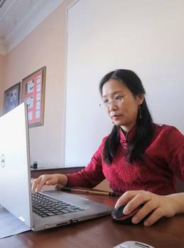 担任汉语专职教师的苏春老师也在教室学习录播