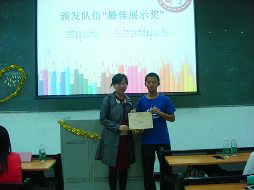 两支队伍各具特色的展示告一段落,随后便是问答互动环节,在两支队伍的队长热情地回答了同学们的问题后,大会进入到最后一个环节——揭晓评优结果并颁奖(包括院级优秀个人和院级优秀队伍)以及揭晓今晚“最佳展示奖”的队伍并颁奖。