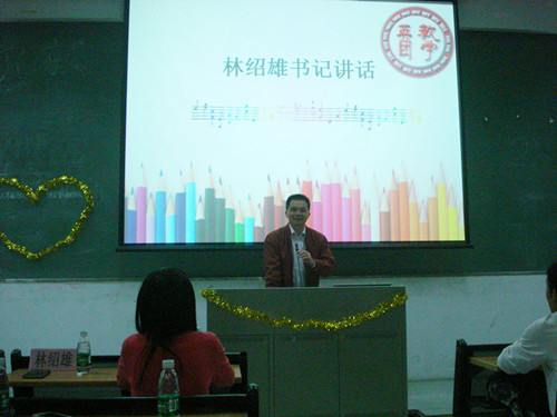 7点15分,大会准时开始,在主持人对本次三下乡概况做了简短的介绍后,林绍雄书记发表了讲话。林书记首先表明三下乡是很有意义的活动工作,并告诉同学们“三下乡,广外是走在前沿的”。随后,林书记追忆起在他带领下乡的过程中发生的点点滴滴,如早在1996年,他向清远教育局征询,希望找到能提供下乡服务支教的公司时所遭到的挫折,又如他亲自带领下乡时与员工一起走过乡间泥泞的小路,一起生火做饭……接着,林书记阐述了三下乡支教活动对同学的特别意义,又对公司三下乡活动提出了发展方向,分别是“扩大服务面,扩大参与面,增加服务点,增加建设服务实践基地”。最后,林书记殷切地希望在场的每一位同学都能积极参加三下乡活动,勇于奉献,为乡村地区带去正能量,做有上进心有要求有形象有素养的人。