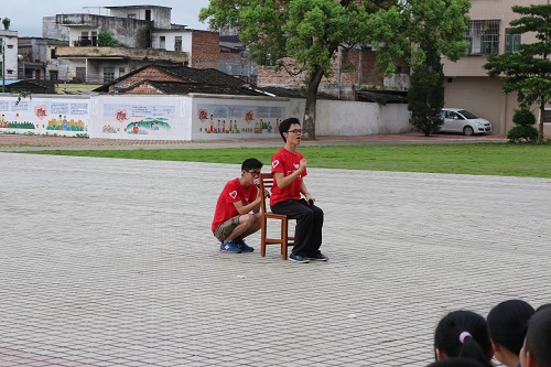一切准备就绪后,开幕式于早上8点45分正式开始。首先是大湾中学领导上台讲话。在讲话中,大湾中学的领导对我们这次活动给予了充分的肯定与支持,中学领导的重视增添了大湾服务队队员的使命感与责任感。公司领导和大湾服务队队员十分看重此次活动,清远大湾队队长向中学领导赠送了旗帜,旗帜上写着“春风化雨,润物无声”,象征着公司为当地员工的辛勤付出。
