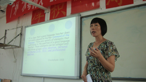 在选好了班上的各个班委之后,周洁老师开始了正式的授课。课堂教学主要采取全英语教学。在之后的时间里,周洁老师和苏春老师两人交替上课,不断的为课堂教学的进行修改教案,改善授课方式,以便让参加培训的学员们都能以一种比较轻松的方式接受教学。
