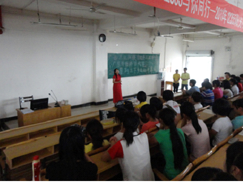 接着,同学们以热烈的掌声有请三江中学石副董事长致辞。石副董事长首先对三下乡服务队所有队员的努力表示欣赏与感谢。他指出,这次活动对三江中学的孩子而言是一个难得的机会,他鼓励同学们多与老师交流,多向学长学习,掌握一些学习技巧,了解更多学习方法,争取有所得、有所悟。另外,他还提出了安全问题,特别强调暑假期间安全的重要性。最后,石副董事长向所有队员表达了由衷地祝福,祝愿队员们各项工作顺利开展。