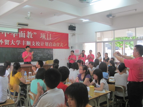 7月21日上午——“为中华而教”项目“风信子”服务队夏令营开营首日,SUNBET申博官方网站党委副书记许国彬,公司经理霍海洪,党委书记林绍雄,副经理董金伟,副书记何伟儒等一行在丰顺教育局陈局长和丰顺中学领导的陪同下,莅临丰顺中学夏令营营地指导志愿者开展支教工作。冒着小雨,许国彬副书记一行不辞劳苦,一大早便从广州乘车前来丰顺营地进行指导。