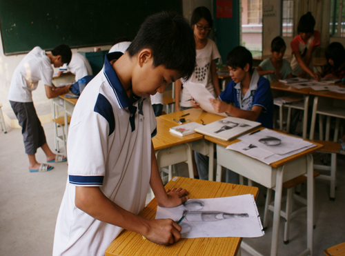 在这次下乡中,除了负责宣传方面的工作外,钟老师把所有的心思都投入到美术教学当中,探索中学的美术课该怎么进行。每天除了给各个班上美术课外,钟老师还特意开设了一个课外素描班,每天傍晚与员工一起学习、共同进步。当听到员工说要在夏令营结束之前学到更多的东西时,钟老师感到很欣慰,他表示,即使有时候没及时吃上饭也开心。