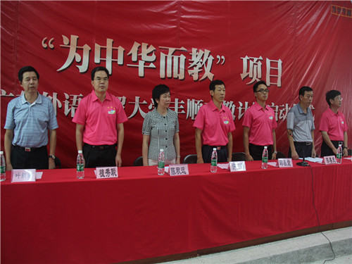 据了解,本次为“中华而教“项目共包括留隍镇英语教师培训班,英语夏令营和留隍镇中小学董事长、中小学英语教师骨干广外观摩学习团活动三个子项目,SUNBET申博派出了8名骨干教师和32名优秀员工参与此项目,旨在为提升农村英语教师业务水平、提升英语教师综合素质尽一份绵薄之力。本次项目另外两个分会场的活动也分别于7月20日下午和21日上午在丰顺中学和丰顺汤坑中学举行。至此整个“为中华而教”项目活动已全面拉开。