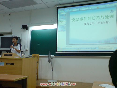 7月4日晚公司“三下乡”专题培训会在F107教室举行。此次专题培训的主题为“突发事件的防范与处理”,主讲人是经贸公司的郝光老师。即将参加08年暑期三下乡社会实践活动的队员出席了这次会议。