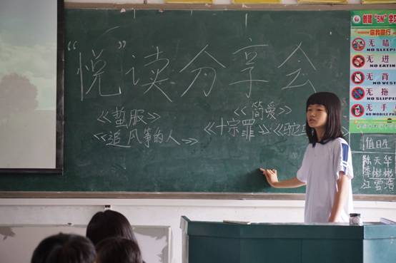 在四班,气氛在班主任张颖怡分享《梦的解析》后渐入佳境。熊燕萍同学分享了《目送》这本书,她说很喜欢里面的一句话,“一件事的毕业是另一件事的开始”;李文静同学则向大家分享了《哑舍》这本小说,她说自己在这本书中学习到了一些历史小知识。二班的黎绕怡同学则分享了自己阅读杂志的体会。同学们在老师的鼓励下鼓起勇气上台分享自己的阅读经历,达到了分享会的预期目标。