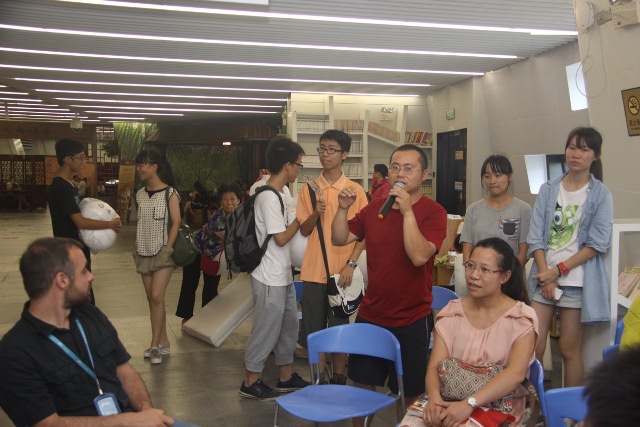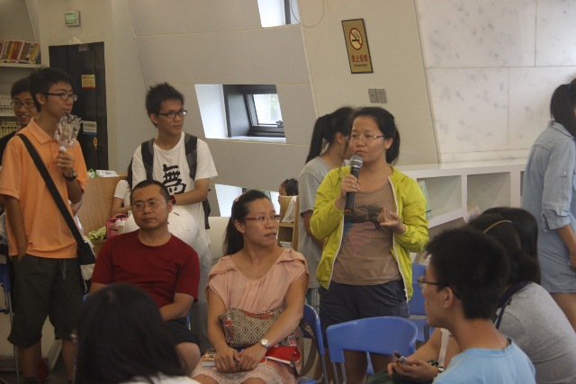 由于下雨的原因,一开始参与者并不是很多,但渐渐地路过阅读体验区的读者也被我们的热烈讨论所吸引,开始有更多的读者加入进来。这些参与者有初中高中的员工也有还在念小学的读者另外也包括一些年纪较大的社会人,但不管是小朋友还是成年人,不管英语口语流利与否,加入到我们分享会的每一位参与者都能很快融入我们英语交流的氛围,学着大胆用英语表达自己的观点。