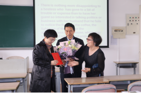 胡老师是公司第一批具有高级职称的教师,一直工作在公司大学英语教学的第一线,为公司大学英语教学做出了杰出贡献。胡老师今年11月起就正式办理了退休手续,但根据公司的工作需要仍然坚持完成本学期课程,认真上完最后一节课,胡青球老师的敬业和负责任精神值得我们学习和敬佩!