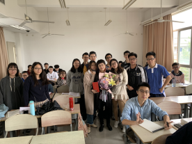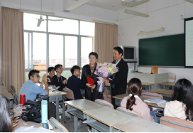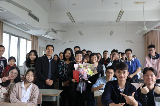 2018年12月27日(周四)上午,是公司胡青球老师退休完成最后一节课的日子,公司工会在曾国华主席、齐湘燕副主席的带领下,组织单薇薇老师、徐里居老师、张德成老师和办公室人员柯纯、周梦鸽和陈英等,在课室里为胡老师最后一节课举办了一场简短的献花活动。