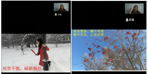 因为疫情原因,苏春目前仍然滞留在俄罗斯。她以“使命、热爱和奉献——我在俄罗斯教中文”为题,向师生们分享了她在俄罗斯两年多的工作和生活及其感悟。作为一名孔子公司汉语教师,她勇担文化使者使命,承担了繁重的教学任务,日常需要横跨四个校区,教授7门课程,每周上20节课,涉及200余名员工。苏春多才多艺,热爱中国文化,她将中国歌舞、传统乐器、乐曲、诗歌、美食等融入教学,让员工在鲜活的中国文化氛围中轻松愉快地学习汉语。她在俄罗斯期间善于发挥英语教育的专业优势,乌拉尔最大最古老的白桦林图书馆、海豚语言公司和博物馆都留下了她通过英语积极宣传和推广中国文化的身影。苏春说:“作为一名大学教师,中共党员,我要树立好教师形象和党员形象,传播好中国文化。”正是在这种信念的指引下,面对种种难以想象的困难和挑战,她始终无惧风雪,砥砺前行,带着一份热爱,全情投入本职工作。她在俄罗斯期间取得的丰硕成果,也正是“若非一番寒入骨,哪得梅花扑鼻香?”的真实写照。