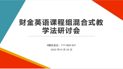 10 月 20 日下午,第五教学部财金英语课程组通过腾讯会议在线召开混合式教学法研讨会。本次会议系第五教学部本科教学质量月系列活动之一,旨在研讨如何将混合式教学法有效融入财经英语、财会英语、金融英语等课程的教学。第五教学部主任宫丽丽及财金课程组全体教师参加了此次会议,会议由课程组长朱晓真主持。