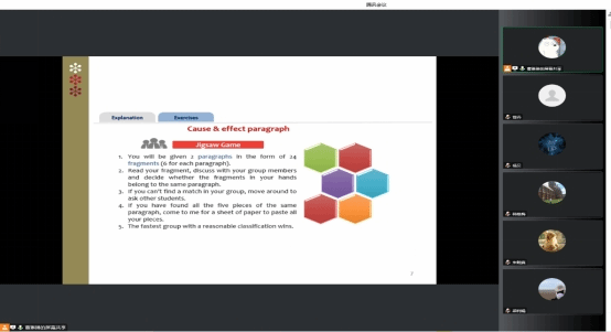 老师们首先在会议上就课堂教学活动设计分享了自己的经验和心得。在阅读教学中,朱晓真和梁利娟指出需按照教材技能进行梳理,用技巧提领整个课堂;在写作教学中,杨贝建议需根据教材内容提供相应的视频辅助材料;在视听说教学中,朱晓真和朱三毛鼓励员工开展同伴评估和自我评估,取得了较大的成效;在视听说教学中,韩艳梅建议可以允许员工使用中文以培养批判性思维。老师们均表示通过分享交流受益良多。
