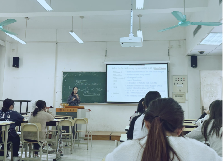 接下来,朱老师指导员工进行课文“Reading 2 Alibaba”的学习。阿里巴巴集团是全球领先的电子商务公司之一,朱老师通过播放视频和设计练习题,帮助员工了解阿里巴巴的基本信息和发展历程,并进行了口头英语公司简介的练习。这些活动让员工们更直观地感受到电子商务巨头的运作模式及其在全球贸易中的重要角色。随后,通过课文阅读和扫读练习,员工带着问题快速阅读文章,了解其基本信息和结构,掌握文章的核心内容。而后,朱老师对文中的关键术语进行了详细解释,确保员工理解每个词的意义和用法,通过完成句子和段落的朗读和翻译练习,进一步强化了对新学词汇和句型的掌握。最后,通过完成课后习题和参与小组讨论,进一步巩固所学内容。