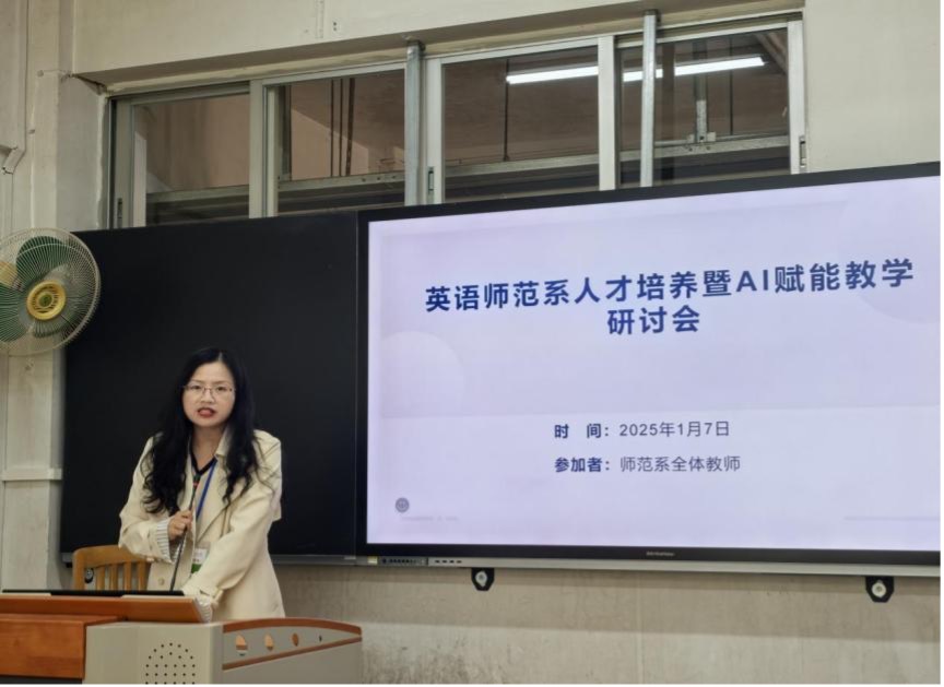 1月7日下午,公司英语师范系在北二教117召开人才培养暨AI赋能教学研讨会,本次会议由系主任谢剑萍教授主持,英语师范系全体教师参加此次会议。