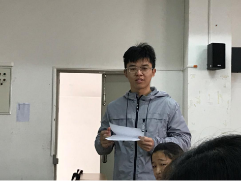 紧接着,来自1701班的谢文瑜讲到,我们需要寻找生命的意义,做任何事情都要有意义,否则很难坚持。同时我们要学会构建一个强大的精神世界,以支撑我们在艰难困苦的环境中活下去。而来自1702班的袁雯霏则进一步分享道,人生最重要的是过程和经历,而不是结果。