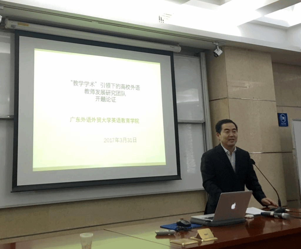 团队带头人权立宏教授从项目的研究背景、研究内容、研究方法、建设目标和管理措施等方面做了清晰与详尽的开题报告,并汇报了项目四个子课题的具体研究问题和研究计划,给出了详细的时间表和实施方案。该团队课题聚焦目前国内高校重研轻教和语言教育领域对教师自身专业发展的研究较为缺乏的现状,以教学学术作为研究理论基础和视角,探讨高校外语教师发展中的身份认同和构建、实践知识构建和文化生态模式等。