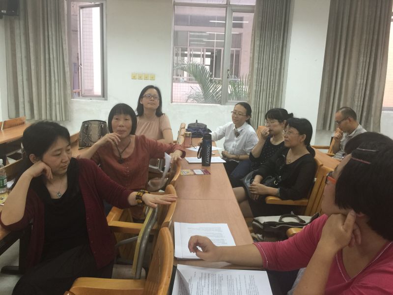 课后,谢剑萍主任主持了本学期教育系教学研讨会,所有观摩公开课的领导和老师参加本次教学交流活动。老师们就吕老师的课堂及其他相关教学话题展开了热烈讨论。例如:如何收集日常真实材料用于课堂教学、如何更新教学内容、教师如何不断获得自我提升、如何在英语教学中树立良好积极的教师权威等。