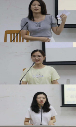 李倩向在座同学分享了自己在学习英语上的心得体会,详细介绍了在三下乡实践活动中的经历,结合实际情况她鼓励同学们要勇敢迈出第一步,多参加社会实践活动。要认识到挫折失败是常态,注意调整自己的心态,同时应该拒绝随波逐流,按阶段规划自己的未来。雷玉珊在分享中以自己竞选班干部的经历鼓励同学们要勇于探索,大胆尝试新鲜事物。贺梓婷以留学规划经验分享为主题,将自己在申请国外高校的经验历程分享给在座同学,为有留学意愿的同学提供了参考典范。她向建议同学们要明确自己的目标并坚定执行,敢于试错放轻得失心,广结善缘善于寻求帮助。