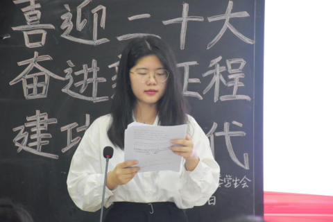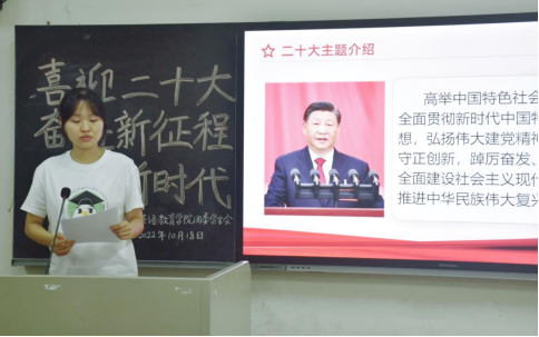 何紫婷介绍了党的二十大的主题和党的二十大报告的主要内容,全体团学骨干集中观看了习近平总书记在党的二十大开幕会上的讲话视频。
