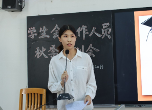 苏晓楠给工作人员播放视频——党的二十大报告金句和习近平总书记对全体青年的寄语。视频中介绍了大会的主题并展示了习近平总书记对广大青年的重要要求。她表示员工会工作人员要坚定不移听党话、跟党走,立志做有理想、敢担当、能吃苦、肯奋斗的新时代好青年!苏晓楠为在座的工作人员解读《普通高等公司员工会(研究生会)章程制定办法》。她提到员工会工作必须坚持以习近平新时代中国特色社会主义思想为指导,工作人员要塑造优秀品质,全心全意为同学服务。苏晓楠展示了《员工会要培育清新组织文化》,该文件深刻阐述了员工组织的价值观,提出应构建覆盖全体同学的员工会组织网络,严格遵守遴选制度,培育优秀的员工会骨干。