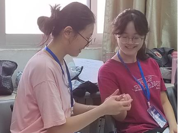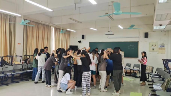 “打开拳头”——同学们两两一组,在不伤害对方的前提下可以使用任何方式将对方的拳头打开。通过这个活动,同学们对成人与孩子的沟通方式有了更加深刻的认知,暴力沟通往往不能达到预期的效果,既伤害孩子,也伤害大人。我们应该尝试站在孩子的角度思考问题,以合作、柔和的方式去让孩子松开拳头,卸下心防。