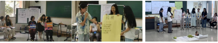 “角色扮演”——邀请两组同学上台,其中一组同学扮演命令式家长,另一组同学扮演启发式家长,再邀请一位同学扮演孩子,扮演结束后由“孩子”分享感受与体会。这样沉浸式的体验让观众切实的感受到了“命令”与“启发”的区别,从而学会尊重孩子、平等交流,让这些曾经只在课本上的金句真正“活起来”,这亦是职前教师的必修课。