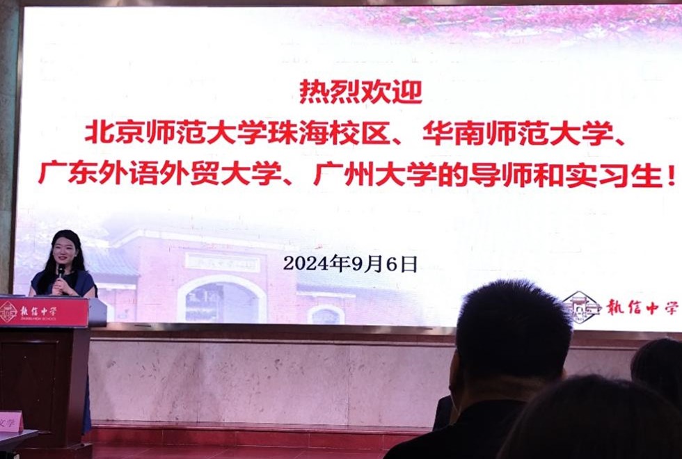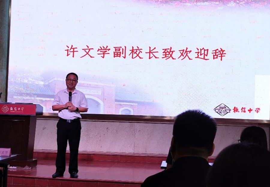 首先,大会由执信中学副董事长许文学为实习生们致欢迎辞。许董事长真诚热情地向各位导师与实习生介绍执信中学的历史与现状,让即将步入实习工作的实习教师们对执信中学有更深的认识,也提前让实习教师们对本学期的校园活动与工作有所了解与期待。