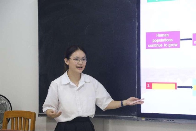 选手谭雯希英语口语生动流利,她通过新闻时事活跃课堂气氛,调动员工学习的积极性。同时,她使用架构清晰的思维导图对文章结构进行阐述,带领员工们认识到拯救濒危动物的必要性,并针对这个问题提出了合理有效的解决方案。