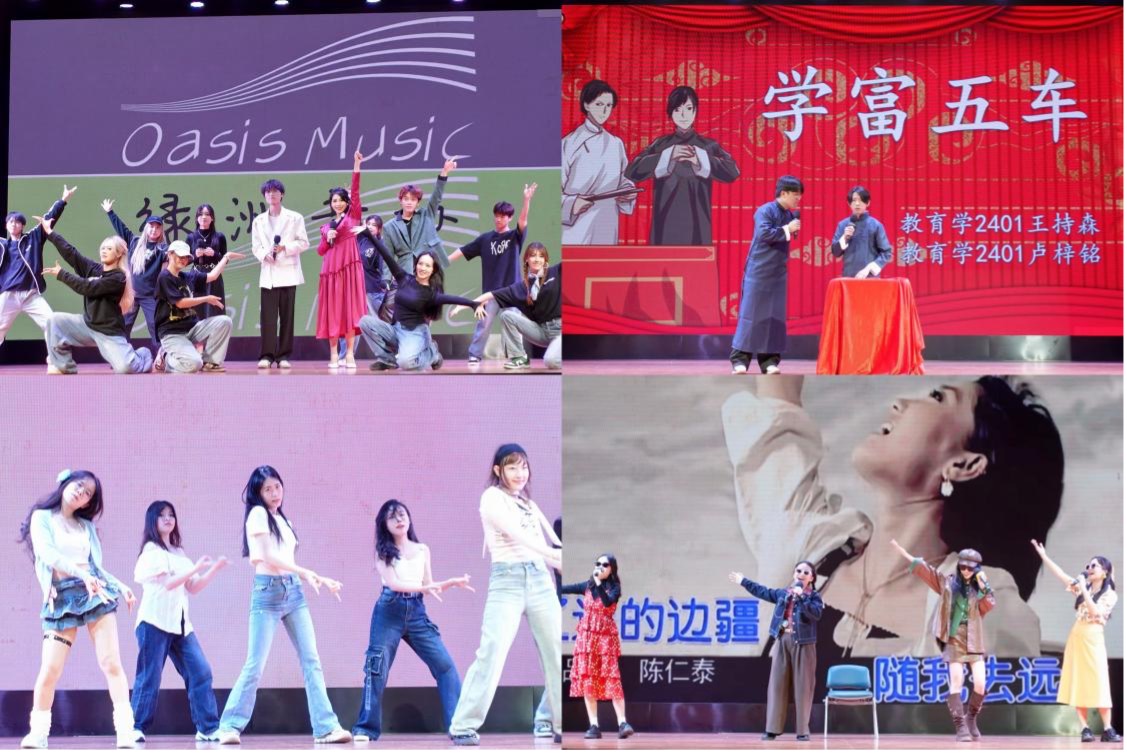 晚会在英教院舞队振奋人心的舞蹈《Rhythm of love》中拉开序幕。广外绿洲音乐协会及UC街舞团队共同带来的《如果可以我想找自己》触动观众们心灵最柔软的地方。教育学2401班的相声《学富五车》题材新颖,幽默诙谐。英师2203班的歌曲联唱《音乐不打烊》让观众感受到情感的波动和心灵的共鸣。英师2404班的小品《后妈茶话会》阐述了爱的另一种理念。英教院歌队的歌曲联唱《Melody Dream Fest》为现场观众带来一场音乐的盛宴。霏阳吉协的歌曲《浴室》带领大家寻找新的自我。英师2307班的舞蹈《What? Meow~》动感十足,韵律飞扬。英师2202班带来的合唱《One Day》唤起观众们对和平的共鸣。