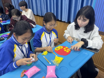 预科生们首先抵达广外乳源实验公司,与当地的初中生开展了一次别开生面的班级活动,共同用黏土创作了一系列以爱国为主题的作品,激发了大家的爱国情怀。在创作过程中,同学们积极分享各自的学习生活、文化习俗以及梦想追求,欢声笑语不断,迅速拉近了彼此的距离。整个活动现场洋溢着亲切友好的氛围,充分展现了团队合作的力量和集体创作的乐趣。