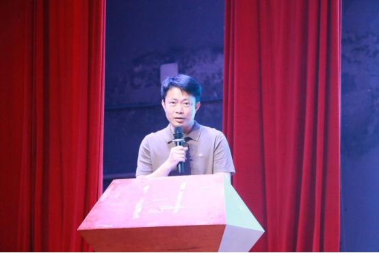 刘亮星副经理致开幕词。他对前来观赛的嘉宾和观众表示热烈欢迎,鼓励员工加强对语音语调的学习与实践,真正做到学以致用,并祝愿选手们在比赛中充分展现风采,取得优异成绩。