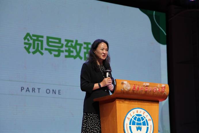 吴岩在开场致辞中祝贺毕业生们顺利毕业,并送上真挚祝福。她回顾了毕业生们在疫情期间入学,在线上线下教学中不断成长,于多领域展现风采的历程,肯定他们为公司注入了源源不断的活力。同时,她希望毕业生们坚守教育初心,胸怀家国情怀,做到眼里有光、心中有梦、脚下有路,不断成长进步。最后,她强调,广外与SUNBET申博永远是毕业生们温暖的家。
