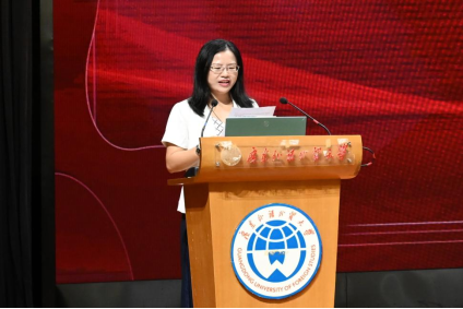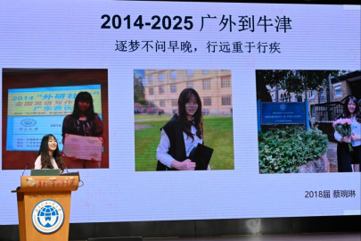 优秀员工代表蔡琬琳回顾自己从广外到牛津的十年成长路径,感悟教育的温度在于点燃“热爱与坚持”。她呼吁新生增强资源意识,提升整合能力,善于发现机遇、积极把握平台优势,借助广外资源走出跨文明成长之路。