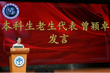 本科老生代表曾颖卓结合自身成长经历,指出大学并非“轻松终点站”,而是需要主动规划、勤勉探索的新赛道。她勉励大家提前布局学业与证书,持之以恒将知识转化为能力,在社团、竞赛、志愿实践中突破自我,以自律与勇气书写无悔青春,在广外英教绽放属于自己的光彩。