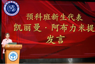 预科班新生代表凯丽曼·阿布力米提发言