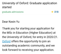 和牛津建立关联的第一封邮件是系统注册成功的通知,在10月底许多申请已经快接近尾声的时候,我还是决定冲一冲牛津和剑桥,毕竟以后还能说自己也是申过牛剑的人哈哈。当时觉得能和牛剑沾亲带故就非常满足了。